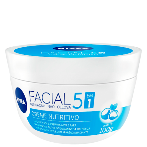 O Hidratante NIVEA Creme Nutritivo devolve a suavidade e luminosidade à pele. Sua textura leve e de rápida absorção, não deixa aspecto pegajoso e oleoso durante o uso. Ideal para manter a maciez, elasticidade e viço. Conta com uma fórmula à base de água, enriquecida com Karité e Vitaminas que garantem um aspecto mais saudável à pele.