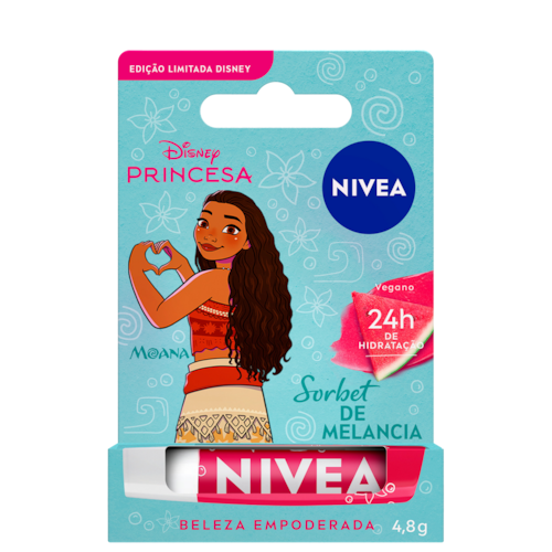 O Hidratante Labial NIVEA Disney® Princesa oferece tudo o que seus lábios precisam: hidratação profunda com manteiga de Karité, proteção por 24 horas, fragrância suave e um toque sutil de cor. Uma combinação perfeita entre cuidado e magia, para se sentir protagonista todos os dias.