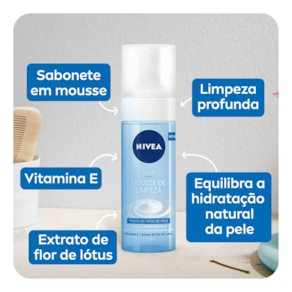 Mousse de Limpeza NIVEA Facial revigora, refresca e possui fórmula rica em ingredientes poderosos, como a vitamina E e B5 que promovem uma pele mais saudável, renovada e bem cuidada. Ideal para conquistar uma sensação de frescor e maciez no primeiro passo do cuidado diário.