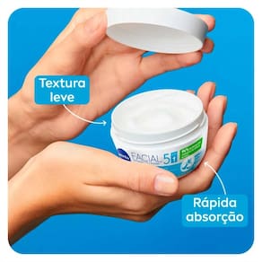 Para que serve? Com fórmula à base de água, Karité e Vitaminas, esse creme deixa a pele com aspecto saudável e bonito. Além disso, ele funciona como um ótimo primer, preparando a pele para a aplicação da maquiagem. Com benefícios como hidratação por 24 horas e não deixar a pele oleosa, o Creme Facial NIVEA Nutritivo é perfeito para quem busca uma pele bem cuidada e pronta para o dia a dia.