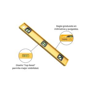 Nível em polímero de engenharia 18. Estrutura resistente em perfil I. 3 ampolas para leituras em 0, 45 e 90. Visores em policarbonato transparente para proteção das ampolas. Régua graduada em centímetros e polegadas. Todas as ferramentas de medição são inspecionadas e verificadas para manter um alto nível de precisão. As ferramentas são submetidas a testes de aplicação prática para garantir sua resistência em uso intenso. As ferramentas são produzidas e testadas conforme normas específicas. Ean: 7891114175189