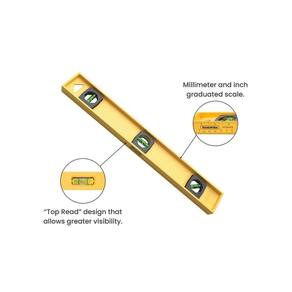 Nível em polímero de engenharia 24. Estrutura resistente em perfil I. 3 ampolas para leituras em 0, 45 e 90. Visores em policarbonato transparente para proteção das ampolas. Régua graduada em milímetros e polegadas. Todas as ferramentas de medição são inspecionadas e verificadas para manter um alto nível de precisão. As ferramentas são submetidas a testes de aplicação prática para garantir sua resistência em uso intenso. As ferramentas são produzidas e testadas conforme normas específicas.