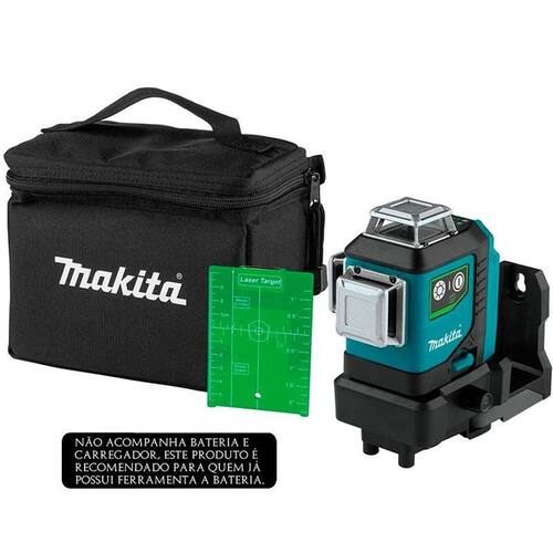 Nivel a Laser 360 graus a Bateria 12V CXT Makita Verde SK700GD CARACTERÍSTICAS Nível a laser de linhas cruzadas. Projetada com a tecnologia CXT. Resistente à água e poeira com a tecnologia XPT. 3 linhas em 360. Base giratória com mecanismo de rotação excêntrico. 4 linhas verticais e 4 linhas horizontais. Laser verde. Uso contínuo de aproximadamente 5h com bateria 12V de 1.5 Ah . Alcance de ate 70 metros com uso do nao incluso ESPECIFICAÇÕES Precisão de nivelamento: +- 2mm / 10m Alcance sem : 2 a 10m Tipo de laser: classe 2 Temperatura de operação: -10 a 50C Intensidade do brílho: 4 níveis Dimensões c x L x A : 149 x 104 x 153mm Peso: 1.2kg Rosca para Tripe 5/8 Bateria: 12V Não acompanhar bateria e carregador. Nem Compativel TK0LDG301F Imagens Meramente Ilustrativas