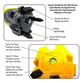 Conteúdo da embalagem: 1 nível a laser com 5 linhas - bom6211 1 maleta de transporte e armazenamento 1 bateria de lítio 1600 mah 1 óculos de proteção 1 carregador bivolt 1 manual de instruções 1 caixa/embalagem Marca: Bomvink