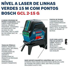 Nível a Laser de Linhas Cor Verde GCL 2 15G - 0601066J00000 - BOSCH