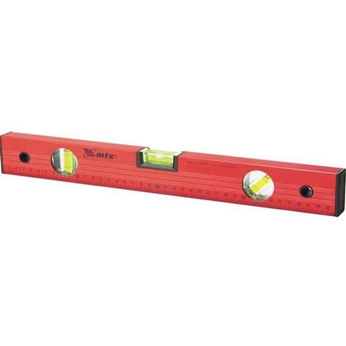 Marca: MTX Modelo: 332239 Corpo em alumínio, conferindo maior leveza. 3 bolhas, sendo uma para nivelamento vertical, uma para nivelamento horizontal e uma para nivelamento 45º. Possui uma taxa de erro baixíssima de 0,057º, garantindo assim a maior precisão possível para seu nivelamento. Conta com escala de medida na base em centímetros e em milímetros. Comprimento do nível: 24 Polegadas - 600 mm Posição das bolhas do nível: 1 bolha vertical,1 bolha horizontal e 1 bolha inclinada 45. Dimensões da Embalagem: 60cm x 5cm x 2cm Peso: 0.215kg Garantia: 90 dias. Ean: 7899612710550