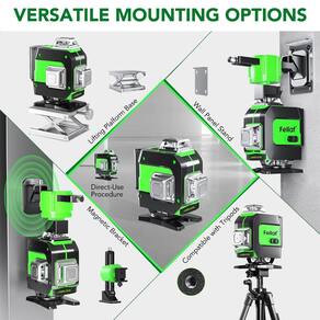 - ?Nível a laser 4 x 360° Autonivelante?As ferramentas de nível FELLAT Laser oferecem 4 planos de 360° para montagem no chão e na parede, o horizonte a laser verde é 4 vezes mais brilhante do que o feixe vermelho e pode fornecer até 3 metros de distância de trabalho para uso interno e externo. Nível de segurança - Classe II, < 1 mW de potência de saída.