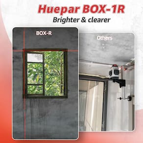 - ?Nível a laser autonivelante de 150 pés?O nivelador a laser Huepar BOX-1R de 45,7 m projetará uma linha horizontal de 130° e uma linha vertical de 150° ao trabalhar, e equipado com uma precisão : ± 1/13 pol. a 33 pés (± 2 mm a 10 m). A ferramenta de nível a laser tem feixe verde brilhante, aderência suave e proteção contra quedas de 120 cm, é adequada para uso interno e externo. IP54 resistente à poeira e água, Classe de segurança II, 8 horas de tempo de trabalho de linha única, 4-5 horas de tempo de funcionamento em toda a linha de feixe