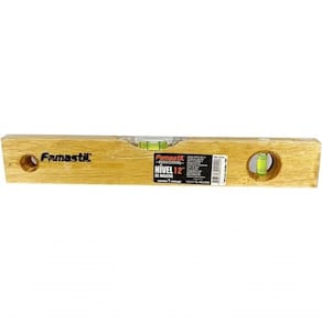 O Nível de Madeira 12Famastil possui duas bolhas de plástico, que não quebram. Essa ferramenta garante que o piso e outras superfícies estejam alinhados horizontalmente