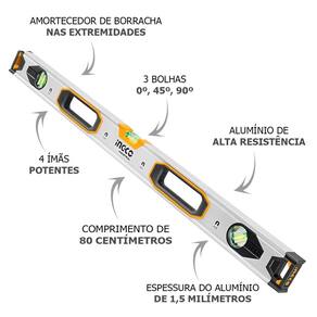 - 1 Nível Magnético de Alumínio Profissional 80cm Ingco.