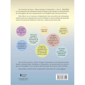 No Caminho de Jesus – Álbum Litúrgico-Catequético | Ano A - 2025/2026 é uma proposta de catequese familiar e litúrgica para ajudar no entendimento da mensagem de Jesus apresentada no Evangelho das missas dominicais. Este Álbum é um recurso complementar aos encontros de catequese, oferecendo aos catequizandos e seus familiares a oportunidade de aprender sobre a fé de forma dinâmica. É um caminho de educação da fé para toda a família. Além disso, conta com figurinhas adesivas e um presente surpresa!