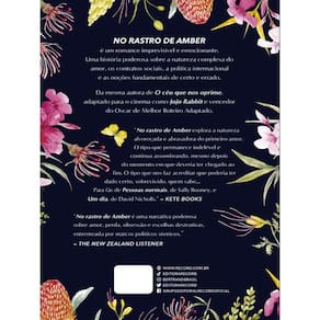 Um romance imprevisível e emocionante. Em No rastro de Amber, Christine Leunens apresenta uma história poderosa sobre a natureza complexa do amor, política internacional e noções fundamentais de certo e errado. Ethan Grieg é um estudante de cinema e está apaixonado por sua melhor amiga, Amber Deering, uma ativista ambiental que vive na fazenda de sua família aparentemente perfeita. Amber ama Ethan, mas não do jeito que ele deseja. Em vez disso, ela entrega seu coração para o viúvo Stuart Reeds, um charmoso e refinado investidor britânico quase duas gerações mais velho. Veterano da Guerra da Coreia, Stuart está mentalmente preparado para a longa e indireta guerra entre ele e seu jovem rival pelo coração de Amber. Sempre um passo atrás de Stuart, Ethan viaja da França à Antártida na tentativa de seguir em frente e abandonar o passado. Mas, apesar de seus esforços, parece haver um magnetismo entre ele e Amber que constantemente os traz de volta para a vida um do outro, mantendo o amor de Ethan vivo. Quando segredos familiares começam a ser expostos e nada é o que parece ser, cada um se vê obrigado a cometer atos impensáveis. Ambientado na Nova Zelândia durante a tumultuosa e em constante transição década de 1980 — a era do movimento antinuclear, dos protestos do Springbok rugby tour e do bombardeio do navio Rainbow Warrior —, No rastro de Amber é um romance poderoso e passional que mostra quão longe alguém pode ir pelas pessoas que ama. “No rastro de Amber explora a natureza alvoroçada e abrasadora do primeiro amor. O tipo que permanece indelével e continua assombrando depois do momento em que deveria ter chegado ao fim. O tipo que nos faz acreditar que poderia ter dado certo, sobrevivido, quem sabe… Para fãs de Pessoas normais, de Sally Rooney, e Um dia, de David Nicholls.” — Kete Books “No rastro de Amber é uma narrativa poderosa sobre amor, perda, obsessão e escolhas destrutivas, entremeada por marcos políticos sísmicos.” — The New Zealand Listener