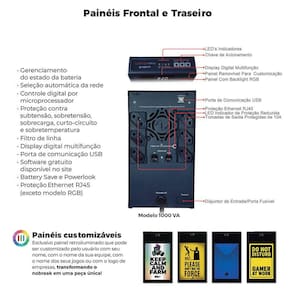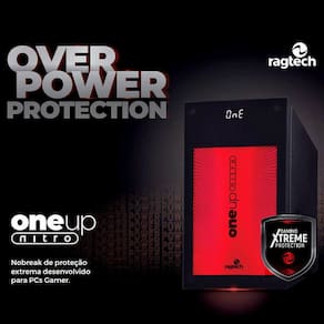 Nobreak Gamer 1000Va 700W Senoidal Pura Para Pc Gamer RagtechNobreak Gamer 1000VA 700W Senoidal Pura Protetor Transorb RJ45 Módulo Gamming Sense Específico para Computador Gamer Ragtech One Up Nitro 4592Único Nobreak Senoidal com características profissionais projetado especialmente para PCs Gamer de alta performance contendo fontes de alto rendimento, PFC ativo e placas de vídeo de grande poder de processamento. Protege os equipamentos contra pequenos cortes de energia, interrupções de longa duração e surtos na rede elétrica e na rede Ethernet.Importante: PCs Gamer não devem ser alimentados por nobreaks convencionais com formas de onda por aproximação ou similares.A Tecnologia One Up Nitro possui módulo de correção de voltagem, que mantém as saídas estáveis e prolonga a vida útil do seu equipamento.Display Multifunção que informa o estado de operação do nobreak e da rede elétrica, exibindo vários parâmetros.Personalização RGB e TAGs frontaisJogue, corra, lute, avance, simule, gerencie, acompanhe, conquiste, vença sem se preocupar. Com o OneUP Nitro as suas disputas não acabam de repente.Nobreak Gamer, no stressEspecificações:- Potência VA : 1000- Potência W : 700- Forma de onda do inversor: Senoidal Pura- Fator de Potência 0,7- Tensão de Operação: 12V- Baterias: 2 de 12V/5Ah- Display digital inteligente Multifunção- Módulo de correção Gamming Sense- Tensão de Entrada: 115/127/220V Seleção da tensão de entrada automa´tica - Tensão de Saída: 115V- Protetor de rede LAN/Ethernet: RJ45 Rede/PC com tecnologia transorb de alta performance- Número de tomadas: 6 2P+T 10A - Conexão de entrada: Cabo com 1,5m de comprimento com plugue padrão NBR 14136 2P+T- Comunicac¸a~o: Serial via USB para softwares: Supervise Personal supervisão do nobreak e RGB OneUP personalização de cores - Controle Digital Microprocessado True RMS - Painel com Back Light RGB- Faixa de regulação em modo rede 89V até 260V modelo Ti - Regulação de saída do inversor: 80V até 266V modelos Ti - Tempo de acionamento do inversor: 0,8 ms- Tempo de carga da bateria interna até 80% : 8 horas- Regulação em rede atende NBR 14373 : 60 Hz- Ventilação: Sistema inteligente para controle de fluxo de ar com baixo ruído sonoro- Sensor de temperatura com desligamento: Sim- Powerlook Battery Save : 1 ciclo de rede- Tripla proteção contra surtos de tensão: 24000A 8x20us - Proteção contra subtensão, sobretensão, sobrecarga, curto-circuito e sobretemperatura- Forma de proteção contra sobrecorrente: Disjuntor rearmável localizado na traseira do equipamento circuit breaker - Indicação luminosa de: inversão entre fase e neutro, falta de aterramento e atuação da proteção de surtos- Alerta de bateria: Indicação de fim de vida útil da bateria- Peso: 13,5 kg- Dimensões do equipamento A x L x P mm : 224 x 125 x 375