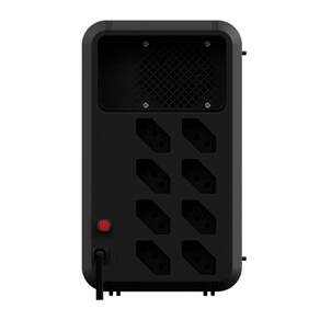 Fator de potEecirc;ncia 0,5 Tensão nominal de saída120 V~ Regulação da tensão Modo Rede: 120V~ Eplusmn;10%Modo Bateria: 120V~ Eplusmn;5% Tempo de transferEecirc;ncia<8 ms FrequEecirc;ncia no modo Bateria 60 Hz Eplusmn;1 Hz Forma de onda no modo Bateria Semissenoidal (retangular) Tomada (NBR 14136) 8 tomadas de 10 A