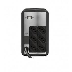 Características: Nobreak Microprocessado com memória Flash interna Tecnologia Line Interactive Dois estágios de regulação Forma de onda semi-senoidal Auto teste para verificação das condições iniciais do equipamento Tecnologia de montagem SMD que garante alta confiabilidade e qualidade ao nobreak Comutação livre de transitórios pois rede e e inversor são perfeitamente sincronizados (PLL) Pode ser ligado mesmo na ausência de rede elétrica (DC Start com bateria carregada) Recarga automática da bateria mesmo com o nobreak desligado, garantindo maior tempo de vida útil Chave liga/desliga temporizada e embutida no painel frontal que evita desligamento acidental Porta-fusível de proteção de entrada AC com unidade reserva Função True RMS com melhor qualidade na regulação de saída Permite ser utilizado com grupo gerador devido à sua ampla faixa de frequência de entrada (45Hz-65Hz) Circuito desmagnetizador Estabilidade na frequência de saída devido ao uso de cristal de alta precisão Gabinete em plástico ABS alto impacto anti-chama Bateria selada tipo VRLA livre de manutenção e à prova de vazamento Sinalização visual através de três leds no painel frontal com todas as condições do nobreak, da rede elétrica, da bateria e da carga Indicação de potência consumida pela carga Gerenciamento de bateria que avisa quando a bateria deverá ser substituída Função Mute: pressionar o botão frontal 6 vezes para inibir ou habilitar a campainha Sensor carga mínima: pressionar o botão frontal 10 vezes para inibir ou habilitar o sensor Seis tomadas de saída, dispensando extensões adicionais Proteção contra sobrecarga e curto-circuito no inversor Proteção contra sub e sobretensão na rede elétrica com retorno e desligamento automático Proteção contra descarga profunda de bateria Proteção contra surtos de tensão através de varistor óxido metálico que atenua efeitos de descargas atmosféricas Auto desligamento após descarga total da bateria ou se permanecer em modo inversor com carga mínima durante um período determinado. Rearme automático : Se o Nobreak sofrer um auto desligamento religará automaticamente com o retorno da rede elétrica. Rearme automático de proteção: Se o Nobreak entrar em modo proteção religará automaticamente executando até três tentativas. Potência nominal: 700VA Potência contínua: 300W Potência pico: 350W Potência mínima: 6W Carga de informática: 2 micros Gabinete: Plástico ABS alto impacto anti-chama Ventilação: Forçada interna