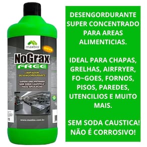 Nograx free maxbio 1l - super desengordurante concentrado para fogão, forno, chapa, air fryer, pisos, paredes e utensílios de cozinha - remove gordura queimada e incrustada - rende muito.