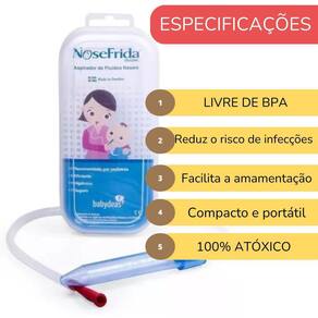 Design Ergonômico e Fácil de Usar: Criado com o conforto do seu bebê em mente, o Nosefrida apresenta um design ergonômico que facilita a remoção suave do excesso de muco do narizinho do seu filho. A praticidade aliada ao bem-estar do seu pequeno