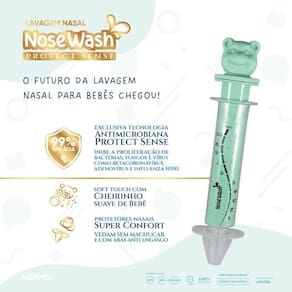 Nosewash é o primeiro dispositivo desenvolvido e fabricado no Brasil especialmente para lavagem nasal em bebês e crianças. Com uma proposta inovadora, NoseWash contém personagens lúdicos em miniatura no próprio dispositivo, além de adaptadores nasais que protegem o nariz.
