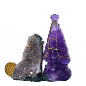 Capelinha de Ametista com Nossa Senhora Aparecida 8 cm – Geodo Natural Classe A | Cristal de Fé e Proteção Espiritual Peça devocional e energética feita com cristal de Ametista Extra e imagem de Nossa Senhora Aparecida.Ideal para altares, orações e decoração espiritual. Descrição do Produto Transforme o seu ambiente com a força da fé e a beleza natural da Capelinha de Ametista com Nossa Senhora Aparecida.Essa peça única une a espiritualidade da padroeira do Brasil com a energia purificadora dos cristais lilás de Ametista, em um autêntico geodo bruto de garimpo. A imagem religiosa está delicadamente inserida na cavidade da pedra, criando um santuário natural que emana paz, proteção e conexão espiritual. Características da Peça