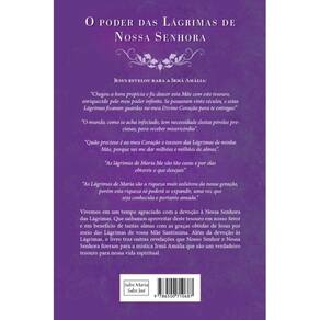 O Poder das Lágrimas de Nossa SenhoraJesus revelou para a Irmã Amália: \"Chegou a hora propícia e fiz descer esta Mãe com este tesouro, enriquecido pelo meu poder infinito. Se passaram vinte séculos, e estas Lágrimas ficaram guardas no meu Divino Coração para te entregar.\" \"O mundo, como se acha infectado, tem necessidade destas pérolas preciosas, para receber misericórdia\". \"Quão precioso é ao meu Coração o tesouro das Lágrimas de minha Mãe, porque vai me dar milhões e milhões de almas\". \"As lágrimas de Maria Me são tão caras e por elas obtereis o que desejais\" \"As Lágrimas de Maria são a riqueza mais sedutora da nossa geração, porém esta riqueza só poderá se expandir, uma vez que seja conhecida e portanto amada.\" Vivemos em um tempo agraciado com a devoção à Nossa Senhora das Lágrimas. Que saibamos aproveitar deste tesouro em nosso favor e em benefício de tantas almas com as graças obtidas de Jesus por meio das Lágrimas de vossa Mãe Santíssima. Além da devoção às Lágrimas, o livro traz outras revelações que Nosso Senhor e Nossa Senhora fizeram para a mística Irmã Amália que são um verdadeiro tesouro para nossa vida espiritual Marca: Salve Maria Salve José