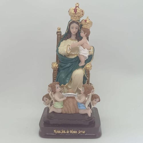 A imagem de Nossa Senhora do Mont Serrat é uma réplica de 20 cm feita em gesso de alta qualidade. A escultura retrata a figura sagrada de Nossa Senhora de Mont Serrat, sendo ideal para colecionadores ou para uso devocional.