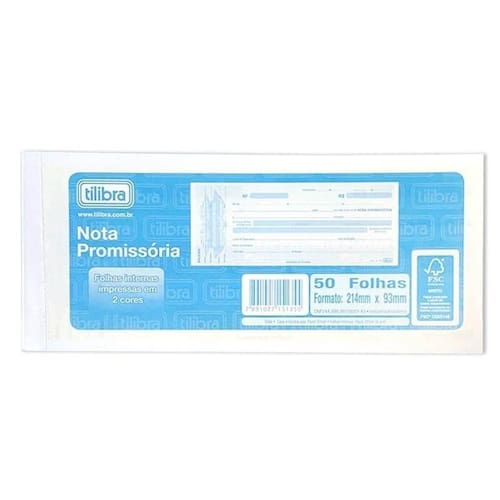 Nota Promissória Tilibra Grande - 50 Folhas Certificada FSC em Formato 214MM X 93MM