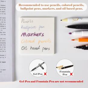 Observação: como as notas adesivas transparentes são feitas de material à prova d'água, recomendamos que você use canetas à base de óleo (canetas esferográficas, marcadores etc.) ou lápis em vez de canetas à base de água para escrever ou desenhar para uma melhor experiência.