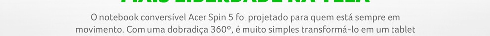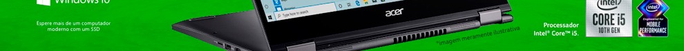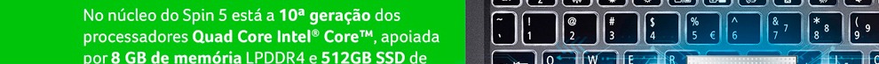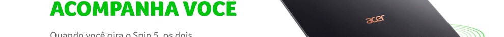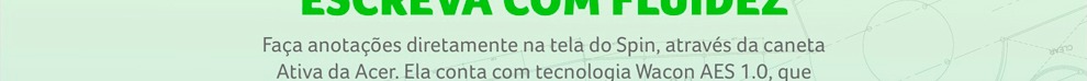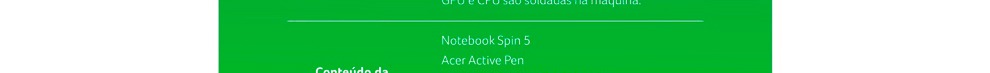 -Conteudo da embalagem: Notebook Spin 5 Acer Active Pen Fonte carregadora do notebook Manual do produto Termo de garantia