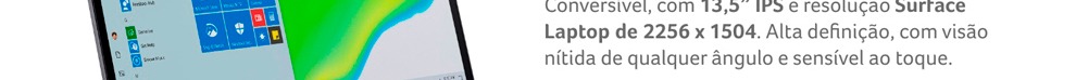 Tela: 13.5” IPS (In-Plane Switching) Suporte a Multi Touch* Resolução Surface Laptop: S.L (2256 x 1504) Design: Ultra fino Anti-reflexo Solução AES (Acer Active Pen) Interface: eDP Proporção: 3:2 Ângulo de visão de 170° graus Acer CineCrystalTM Mercury fre