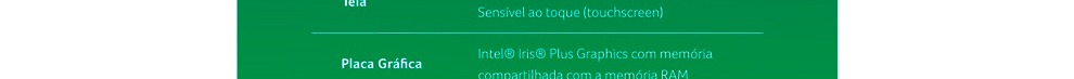 -Placa de video: Intel Iris Plus Graphics com memória compartilhada com a memória RAM. Para maiores informações consultar o site do fabricante