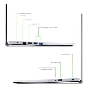 O Acer Aspire 3 A315-58-32UT tem um design simples e discreto com acabamento na cor prata. Pesando cerca de 1,90 kg, não compromete o transporte diário de profissionais e estudantes. O teclado é no padrão ABNT2 e possui o conforto de dispor de um teclado numérico dedicado. A webcam é na resolução HD 720p de excelente qualidade para transmissões de vídeo. O modelo vem equipado com o sistema operacional Windows 11 Home.