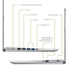 Conteúdo da Embalagem: Notebook Acer Aspire 5 Fonte carregadora do notebook Manual em português Termo de garantia