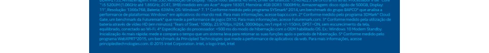 Intel® Core™ i5-6200U Dual Core 2.3 GHz com Turbo Max até 2.8 GHzCache