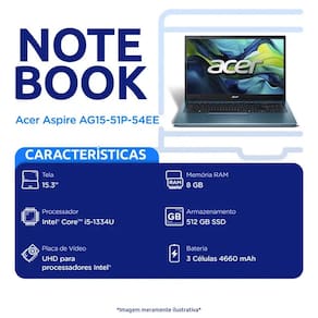 Notebook Acer Aspire Go 15 i5 W11 8GB 512GB SSD 15.3 Polegadas AG15-51P-54EE