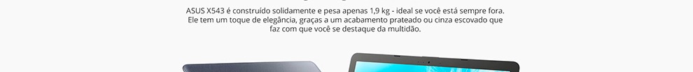 O notebook ASUS X543 tem design clássico, com acabamento escovado, super elegante e o melhor de tudo é que ele é muito leve. Perfeito para você que precisa sair e levar o computador, mas também quer tela grande para aumentar a produtividade.