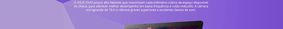 Se o seu objetivo é relaxar, aproveite o sistema de som super poderoso do ASUS X543. Ele usa cada milímetro do seu chassis para reproduzir graves mais impactantes e sem ruídos. A caixa de ressonância de 19,4cc torna o som cristalino e incrivelmente realista.