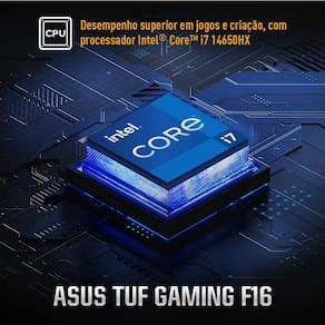 Equipado com o poderoso processador Intel Core i7 14650HX de 14 geração, o TUF Gaming F16 entrega alto desempenho tanto em jogos de última geração quanto em softwares de produtividade e criação. O chip garante fluidez total ao sistema, assim como as mais altas taxas de quadros em games competitivos.