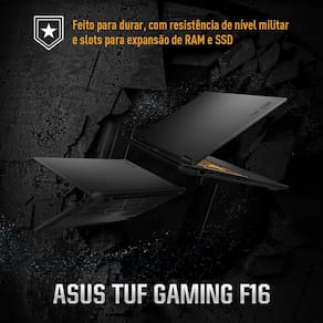 O notebook gamer TUF Gaming F16 é o equilíbrio perfeito entre potência e portabilidade. Elegante e robusto, embarca processadores Intel Core (14 geração) e placa de vídeo NVIDIA GeForce RTX 5060 para alto desempenho em jogos e criação, além da tela brilhante de 16 polegadas. O sistema de arrefecimento incorpora um novo dissipador de calor de ponta a ponta, que mantém a performance estável mesmo em alta demanda. Por fim, a resistência de nível militar, assim como os slots para expansão de RAM e SSD, asseguram a durabilidade da máquina por anos.