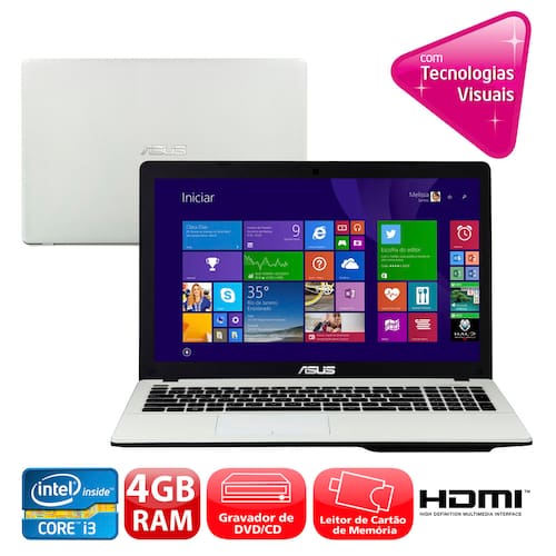 Tenha tudo o que deseja num Notebook com o Asus X550CA Branco. Alta tecnologia em Hardware e Software para lhe proporcionar o melhor desempenho, imagem e som num só produto. O Notebook Asus X550CA possui processador Intel Core i3 de 1,8GHz, placa gráfica integrada, memória RAM de 4GB, Windows 8 e 500GB de memória para você salvar o que quiser.