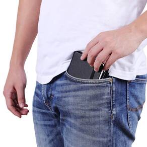 Tamanho portátil --- Tamanho de 3 x 5,5 polegadas, 0,73 polegadas de espessura, tamanho adequado para bolso.