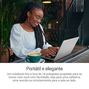 Tenha uma experiência de visualização confortável em um notebook de alta performance e compacto de 14 polegadas com taxa de proporção de 16:10 e tela com resolução Full HD.