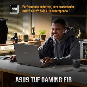 Notebook Gamer 16” Asus TUF Gaming F16 FX607VJ-RL002 - com placa de vídeo dedicada NVIDIA® GeForce RTX™ 3050, fluidez, gráficos realistas e potência para qualquer desafio! O