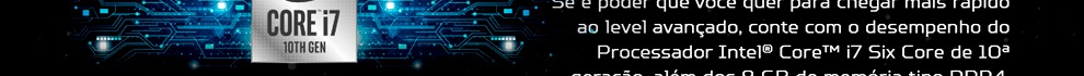 Encare os mais intensos desafios com força máxima e surpreenda os inimigos. Com o processador da 10ª geração Core i7 e memória de 8GB RAM você tem o poder de fogo necessário para superar qualquer inimigo.