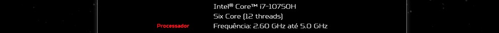 Intel® Core™ i7-10750H Hexa Core 2.60 GHz com Turbo Max até 5.00 GHz