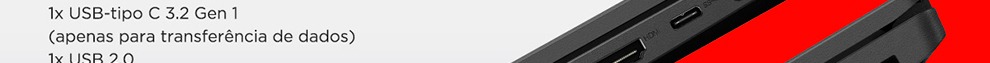 1x USB-C 3.2 Gen 1 (apenas para transferência de dados), 1x USB 2.0, 1x USB 3.2 Gen 1, 1x HDMI, 1x Ethernet (RJ-45), 1x conector de energia, 1xAudio combo jack (3.5mm)