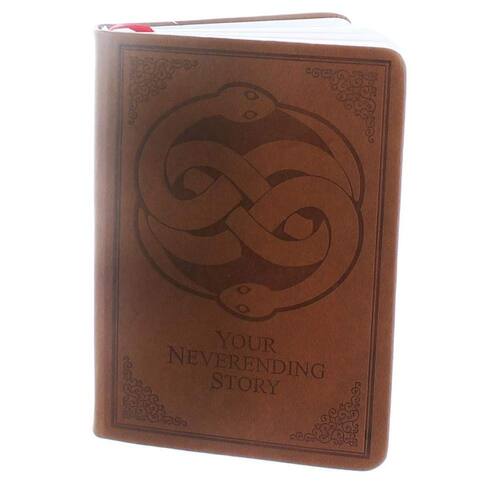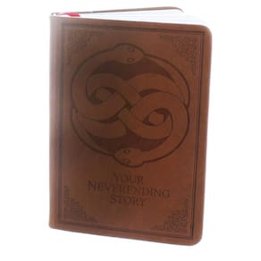 Este caderno apresenta um design influenciado pela clássica imagem de movimento de fantasia de 1984 The NeverEnding Story! A capa retrata duas cobras entrelaçadas e diz "Your NeverEnding Story". Assim como no livro do filme, ele ainda tem um marcador de página de tecido vermelho! Um exclusivo Nerd Block.
