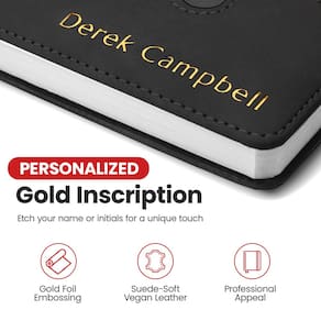 Apresentamos nosso caderno de couro personalizado, uma mistura impressionante de sofisticação, funcionalidade e personalização. Este diário de couro premium permite que você faça uma declaração ousada com seu nome elegantemente gravado na capa dura em folha metálica dourada. Com um simples clique, você tem o poder de personalizar seu caderno de trabalho, elaborando um diário verdadeiramente distinto e personalizado que reflete sua individualidade. Projetado para conveniência - este diário encadernado em couro apresenta um bolso cuidadosamente trabalhado e um design de trava segura. O design de bolso é perfeito para manter notas soltas, cartões de visita ou até mesmo itens essenciais como o seu telefone à mão. A fechadura garante que seus preciosos pensamentos e notas permaneçam protegidos. Nosso caderno A5 apresenta um acabamento luxuoso semelhante a camurça. A capa de couro vegano suave e flexível convida seus dedos a explorar sua textura macia, adicionando um toque de indulgência à sua experiência de escrita. É um diário de viagem que atrai homens e mulheres, exalando sofisticação e requinte em cada página. Abrace infinitas possibilidades com este caderno forrado versátil. Seja capturando seus pensamentos, esboçando suas ideias, anotando ou mantendo um diário pessoal, este caderno de reuniões se adapta facilmente às suas necessidades criativas. É a companhia perfeita para escritores, artistas, executivos e profissionais que buscam se expressar com estilo. Você está procurando uma ideia de presente notável? Nosso diário de escrita é a escolha perfeita. Combinando praticidade com elegância, é um presente atencioso para aniversários, aniversários ou qualquer ocasião especial. Seus entes queridos ficarão cativados pelo toque personalizado. Entregue-se ao fascínio de nossos cadernos personalizáveis, onde o luxo encontra a expressão pessoal. Liberte sua criatividade em um caderno de capa dura que é exclusivamente seu. - Seu caderno personalizado: faça uma declaração com a personalização em relevo dourado para o seu nome, infundindo um ar de sofisticação neste diário exclusivo encadernado em couro. O caderno de viagem se torna uma tela de suas preferências, clique em "Personalizar agora" para começar. Faça uma declaração ousada e adicione um toque de elegância incomparável ao seu caderno hoje. - Design conveniente de bolso e trava: mantenha-se organizado em movimento com um bolso prático, perfeito para armazenar notas soltas, cartões de visita ou outros itens essenciais. Ele também vem com um cadeado para manter as páginas do diário de viagem seguras. - Couro vegano macio de camurça: mergulhe na sensação luxuosa deste diário para homens e mulheres, com um acabamento de camurça suave que oferece uma sensação tátil e sofisticada que eleva sua experiência de escrita. - Infinitas possibilidades: seja para diários, esboços, anotações ou um diário para escrever, este caderno versátil forrado A5 se adapta às suas necessidades criativas, tornando-o um presente perfeito para escritores, artistas, executivos e profissionais. - Presente memorável: Impressione seus entes queridos com um presente personalizado que combina praticidade e estilo. Este caderno de couro personalizado é um presente atencioso para aniversários, aniversários ou qualquer ocasião especial. Escolha entre 8 cores: azul, azul celeste, preto, azul tempestade, marrom, vermelho, cinza e marrom.