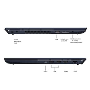 A conectividade de ponta inclui Wi-Fi 6 ultrarrápido, portas USB-C, USB 3.2 Gen 1, HDMI e entrada para cartão SD, garantindo versatilidade para diferentes necessidades. A webcam HD com bloqueador mecânico e os microfones duplos com cancelamento de ruído proporcionam chamadas de vídeo com mais qualidade e privacidade.