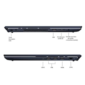 Portas de Conexão: 1 Conexão HDMI, 1 Conexão USB 2.0, 2 Conexão USB 3.0/3.2 Gen 1,1 Conexão USB 3.2 (Tipo C), 1 combo (microfone/áudio), (RJ45)