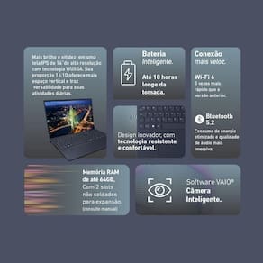 VAIO FE16 VJFE62F11X-B0311H une desempenho avançado e design elegante para atender às demandas mais exigentes do dia a dia. Equipado com o poderoso processador Intel Core i5-1335U de 13 geração, gráficos Intel Iris Xe e 16GB de RAM DDR4, ele oferece fluidez e performance para multitarefas com baixo consumo de energia. O SSD NVMe Gen4 de 512GB garante acesso ultrarrápido aos seus arquivos. A tela de 16 WUXGA com tecnologia IPS, antirreflexo e abertura de até 180 proporciona mais conforto e qualidade visual. Rodando Linux Debian 12, é uma excelente opção para quem busca liberdade e estabilidade no sistema operacional. O teclado ABNT2 com resistência à água, conectividade completa com USB-C, HDMI e Wi-Fi 6, além da bateria com autonomia de até 10 horas, tornam este notebook ideal para produtividade e mobilidade com segurança.